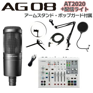 配信用ライト付属!AG08とマイクのセットです!【特徴】[セット内容]・YAMAHA AG08 ×1・コンデンサーマイク audio-technica AT2020×1・マイクケーブル・アーム型マイクスタンド・スマホ等接続用、4 極 ...