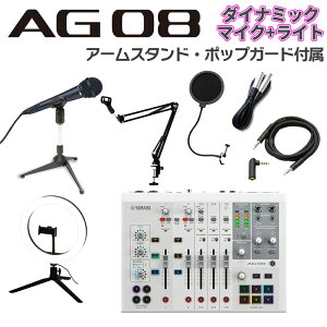 配信用ライト付属!AG08とマイクのセットです!【特徴】[セット内容]・YAMAHA AG08 ×1・ダイナミックマイク ×1・マイクケーブル・アーム型マイクスタンド・卓上マイクスタンド・スマホ等接続用、4 極 3.5mm ステレオミ...