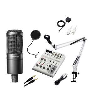 Roland Bloadcast ×1。コンデンサーマイク Audio-technica AT2020 ×1。マイクケーブル。アーム型マイクスタンド。配信用ライト。ポップブロッカー(マイクスタンドに設置するタイプです。画像と形状が異な...