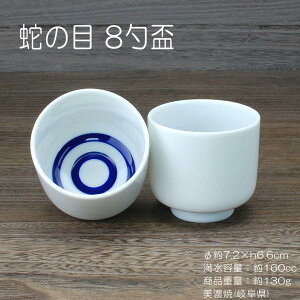 日本酒盃の定番“蛇の目盃”のコップ型です 薄型で反り型 見込み部分にブルーの蛇の目 美濃焼(岐阜県)産で安心・安全です -商品詳細- サ イ ズ :約φ6.4×高さ7.0cm 満水容量:約100cc 商品重量:約
