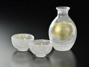 東京都指定伝統工芸品『江戸硝子』の酒器セットです。 金沢の伝統工芸の金箔があしらわれており、上品かつ高級感あふれる器です。 夏の時期の冷酒にぜひお使い下さい。 専用箱入りですので、贈り物にもおすすめです。 ※この商品は手作