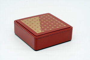 会津漆器 会津塗り お重 夫婦鶴 1段重箱 6.0寸 一段重 朱 サイズ:18.2x18.2xH6.2cm 日本製。材質:PS樹脂 ウレタン塗装。