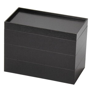 紙製長角重 黒 3段業務用で使用するおせち用・お祝い用 紙重箱です。重箱・7寸を半分にした、手頃サイズの長角。ワンウェイですが美しいプリントで清々しいお祝いの雰囲気を演出できます。☆少人数向けのお節重にぴったりです...