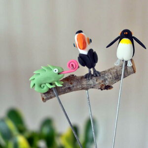 小さくて可愛いガーデンピック3つセットです。お庭の雰囲気をちょこっと変えてくれる癒しアイテム。 一つ一つの作りが細かくとても可愛いです。 アフリカ代表、七変化で有名なカメレオンさん。 ながーーい下で獲物をペロリ。 南極大陸