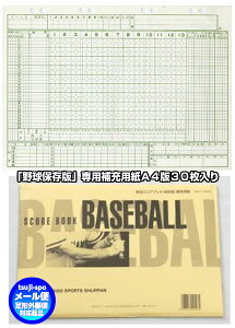 野球スコアブック[保存版]補充用紙。■枚数:30枚入り■判型:A4判 検索ワード: 野球グッズ 野球用品 記録表