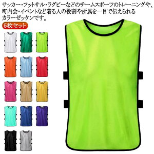 サッカー・フットサル・ラグビーなどのチームスポーツのトレーニングや、町内会・イベントなど着る人の役割や所属を一目で伝えられるカラーゼッケンです。5枚セットスポーツの練習時の組み分けのために着用するのはもちろん、災害・防