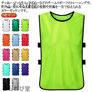サッカー・フットサル・ラグビーなどのチームスポーツのトレーニングや、町内会・イベントなど着る人の役割や所属を一目で伝えられるカラーゼッケンです。5枚セットスポーツの練習時の組み分けのために着用するのはもちろん、災害・防
