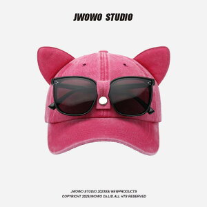 キャップ レディース 猫耳 フライトキャップ 野球帽 ストリート サングラス付き 紫外線対策 日よけ 婦人用 帽子 ブラック ピンク系 カーキ ネイビー・商品カテゴリ: 野球帽・デザイン: 猫・帽子のタイプ: 丸い・つばの形状: カー...