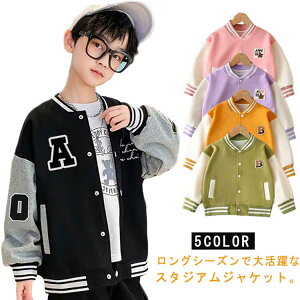 素材構成:90%ポリエステル。 春先や秋口に気軽に羽織れる便利な女の子用スタジャンが新しく登場!今季らしい子供ジャケットで、トレンド感を押さえた存在感抜群の1枚です! シーンを選ばない使いやすさも魅力です。普段着としてもいいし、通学、...