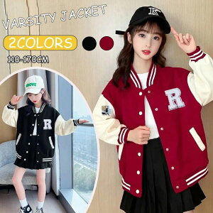 気楽 スタジャン 女の子 ジャケット スプリングコート ジャンパー コート キッズ バイカラー アウター 子供服 長袖 通気性抜群 野球服 カジュアルコーデ シンプル 異素材 上着