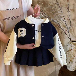 子供服 女の子 3点セットアップ 韓国風 野球 ジャケット 長袖 Tシャツ スカート 春秋 綿