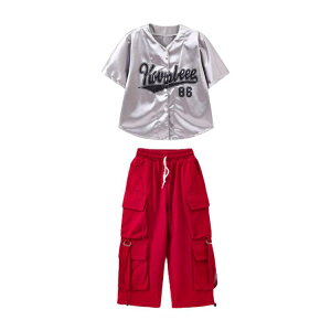 ★商品詳細 灰 白色 キッズ ダンス 衣装 セットアップ アメカジ 野球風 ボール tシャツ ゆったり グレー 柄tシャツ カーゴパンツ 女の子 男の子 ホワイト 上下セット キッズ ダンスウェア かっこいい お洒落 子供服 K-PO...
