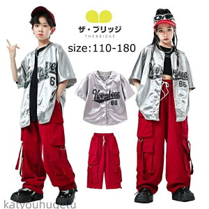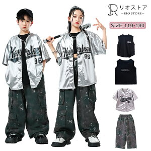 子供ダンス シルバーベースボールシャツ 迷彩柄 カーゴパンツ ヒ