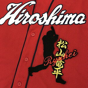 ■広島カープ松山選手ネーム付シルエットのアイロン接着用刺繍ワッペン アイロンにて簡単に接着可能です。 ※写真のユニフォーム、応援歌ワッペン等他の装飾品はついておりません。 ネーム付シルエットのみとなります。 ※紛失防止のた