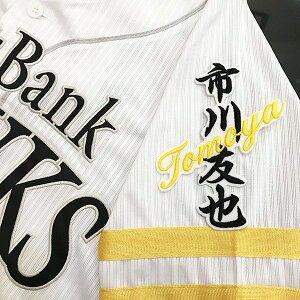 ■ソフトバンクホークス市川選手ネームのアイロン接着用刺繍ワッペン アイロンにて簡単に接着可能です。 ※写真のユニフォーム・シルエットワッペン、応援歌ワッペン等他の装飾品はついておりません。 ネームワッペンのみとなります。