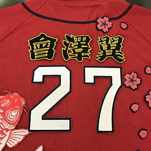 ■広島カープ會澤選手の名前、アイロン接着用刺繍ワッペン アイロンにて簡単に接着可能です。 ※写真のユニフォーム・背番号ワッペン、桜・鯉ワッペン等、他の装飾品はついておりません。 名前ワッペンのみとなります。 ※紛失防止のた