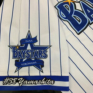 ■横浜DeNAベイスターズ アイロン接着用刺繍ワッペン 5点セット アイロンにて簡単に接着可能です。 【セット内容】 [1]応援歌 ※投手の場合は、生涯横濱となります。 [2]サイン付きシルエット [3]名前 [4]ナンバー [5]桜...
