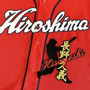 ■広島カープ長野選手ネーム付シルエットのアイロン接着用刺繍ワッペン アイロンにて簡単に接着可能です。 ※写真のユニフォーム、応援歌ワッペン等他の装飾品はついておりません。 ネーム付シルエットのみとなります。 ※紛失防止のた