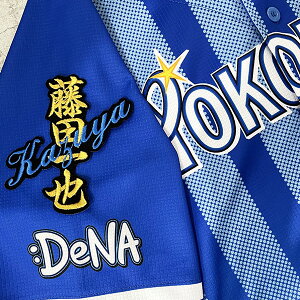 ■横浜DeNAベイスターズ 藤田一也選手のアイロン接着用刺繍ワッペン アイロンにて簡単に接着可能です。 ※写真のユニフォーム・シルエットワッペン、応援歌ワッペン等他の装飾品はついておりません。 ネームワッペンのみとなります。