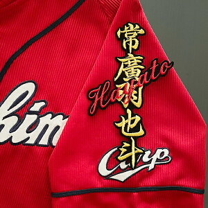 ■広島カープ 常廣羽也斗選手ネームのアイロン接着用刺繍ワッペン アイロンにて簡単に接着可能です。 ※写真のユニフォーム・シルエットワッペン、応援歌ワッペン等他の装飾品はついておりません。 ネームワッペンのみとなります。 ※