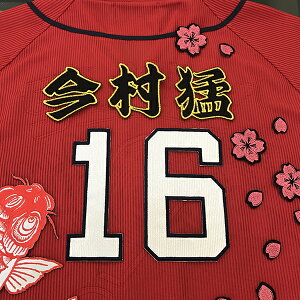 ■広島カープ今村選手の名前、アイロン接着用刺繍ワッペン アイロンにて簡単に接着可能です。 ※写真のユニフォーム・背番号ワッペン、桜・鯉ワッペン等、他の装飾品はついておりません。 名前ワッペンのみとなります。 ※紛失防止のた