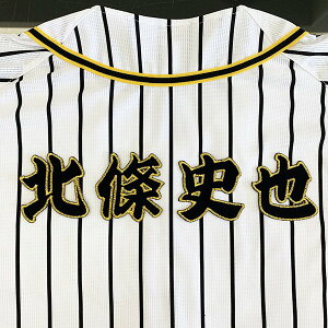 ■阪神タイガース 北條史也選手のアイロン接着用刺繍ワッペン アイロンにて簡単に接着可能です。 ※写真のユニフォーム・シルエットワッペン、応援歌ワッペン等他の装飾品はついておりません。 ネームワッペンのみとなります。 ※紛失