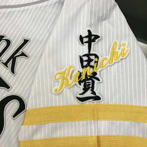 ■ソフトバンクホークス中田選手ネームのアイロン接着用刺繍ワッペン アイロンにて簡単に接着可能です。 ※写真のユニフォーム・シルエットワッペン、応援歌ワッペン等他の装飾品はついておりません。 ネームワッペンのみとなります。