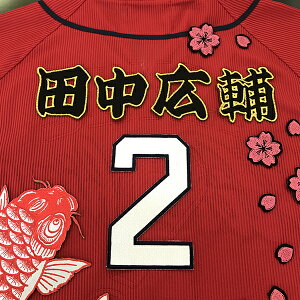 ■広島カープ田中選手の名前、アイロン接着用刺繍ワッペン アイロンにて簡単に接着可能です。 ※写真のユニフォーム・背番号ワッペン、桜・鯉ワッペン等、他の装飾品はついておりません。 名前ワッペンのみとなります。 ※紛失防止のた