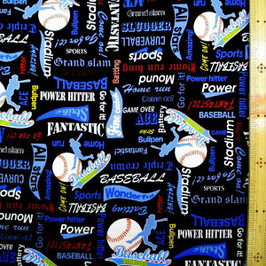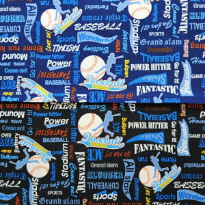 【数量5から】 生地 『オックス 野球柄 ブラック 328-B-BK』 お子様の好きな柄で入園入学準備を! 野球のボールやバッターのシルエット、野球の用語が描かれたオックス生地! オックス生地は透けない適度の厚みで縫いやすく、しなやか...