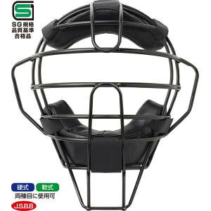 素材:カーボンスチール 対応:硬式・軟式/キャッチャー・審判兼用 仕様:SG規格品質基準合格品、楽Chinパッド標準装備 知的財産権取得:野球用マスク楕円形状 公認:J.S.B.B(全日本軟式野球連盟)