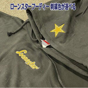 当社オリジナルブランド【ローンスター】のフーディー ロゴ刺繍入りを限定販売 ロゴ刺繍、スター刺繍の色が選べるようになりました 画像のように選択肢1カラー と 選択肢2カラーを選べます ロゴ刺繍とスター刺繍は同じ配色となります