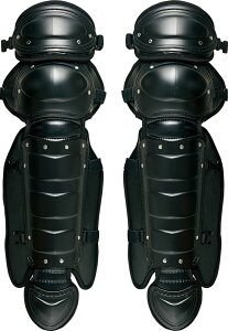 硬式用レガーツのコストパフォーマンス品。キャッチャー防具関係の中で消耗度が一番激しいレガーツの買い換え用として最適なモデル。素材:ポリエチレン。サイズ:膝から足首部360×全長650mm。重量:約1100g(両足)。付属品:収納袋。