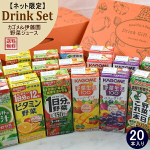 オリジナルギフト:伊藤園&カゴメ野菜ジュース詰め合わせ(200ml紙パック×20本)化粧箱入り。