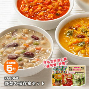 日本災害食大賞 優秀賞 受賞 カゴメ 野菜の保存食セット 災害時における健康を守ります 第一回日本災害食大賞優秀賞受賞した、野菜の保存食セット。 食べごたえのある「野菜スープ」と、30品目の野菜がバランスよく入った「野菜ジュース