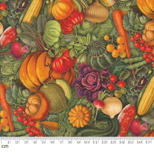 野菜柄のプリントシーチング コットン100% 玉ねぎ・トマト・レモン・とうもろこし・アスパラガスetc カラフルでかわいい野菜や果物がたくさんプリントされています♪ やさしい色合いの個性豊かな野菜たちが並んでいます...
