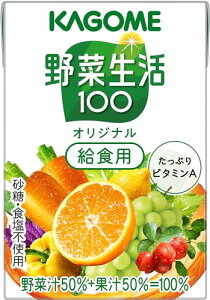 野菜・果実ミックスジュース商品紹介 カゴメ 野菜生活100 オリジナル 給食用100mlは、20種類の野菜と4種類のフルーツをブレンドしたおいしさを楽しみながら、たっぷりビタミンAが摂れる、野菜汁50...
