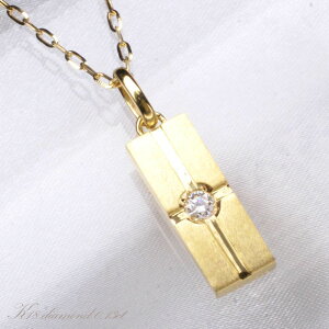 使用貴金属 K18(18金イエローゴールド)トップ・チェーン。中石 ダイヤモンド0.13カラット。総重量 約7.4g。サイズ トップ:横約7.2mm縦約25.6mm(バチカン含む)厚み約2.7mm。バチカン内径:縦:約5.1mm...