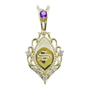2月誕生石アメジストを使用した18金製の、イニシャル入りメンズペンダントヘッドです。 本体素材:K18イエローゴールド/K18ホワイトゴールド。