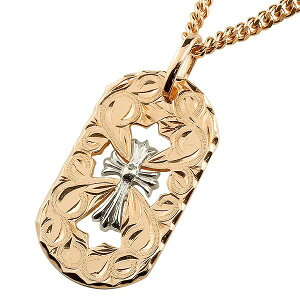 ハンドメイドジュエリー メンズ ハワイアンジュエリー ペアネックレス プレートペンダント ピンクゴールドk18 18金 ミル...
