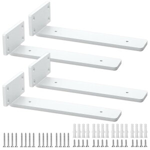 4個◆商品名:HIMOMO 隠し棚受け 4個セット棚受け金具 長さ20cm 厚さ5mm 最大荷重90KG 高耐荷重 頑丈 アイアンブラケット 棚受け金具 見えない 棚受け金具 棚の補強 棚支え (ホワイト...