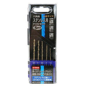 ■商品名 ステンドリルセット ■ブランド名 E-Value ■規格 ESD-5HEXmini ■商品サイズ 幅55×高さ165×奥行き23mm 重量100g ■用途 鉄・ステンレス・アルミ・樹脂・木材への穴あけ作業。 ■機能・特徴 刃...