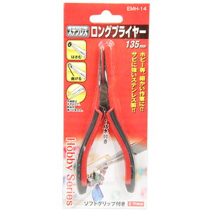 商品名 ステンレスロングプライヤー ブランド E-Value 規格 EMH-14 135mm 商品サイズ 幅53×高さ145×奥行き14mm 重量70g 用途 ホビー、精密作業等。 機能・特徴 サビに強く、素材にやさしいツールです。 ...
