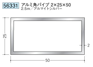 創建 アルミ 角パイプ 2×25×50 2.5m 56331 お届け先が法人様限定です