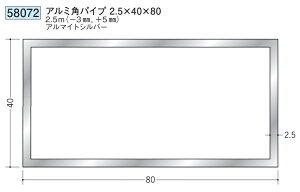 創建 アルミ 角パイプ 2.5×40×80 2.5m(−3mm、+5mm) 58072 お届け先が法人様限定です