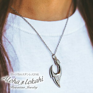 HP1G-079-S 商品名 ハワイアンジュエリー ネックレス サージカルステンレス フィッシュフック Mサイズ リングホルダー ヘビーウェイト 釣り針 ラッキーモチーフ メタル 金属アレルギー シルバー...