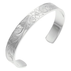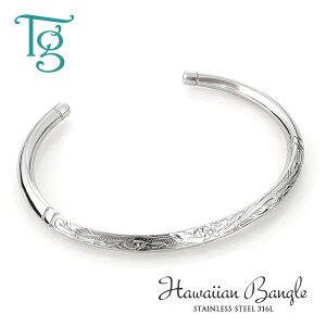 ギフト対応 ハワイアンジュエリーの伝統的モチーフ プルメリアの花と波の繊細な彫りが入ったバングル ブレスレット 肌にやさしいサージカルステンレス316L 商品詳細 刻印 不可 素材 ステンレス316L...