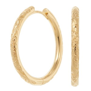 ギフト対応 素材 サージカルステンレス316L製 サイズ (外径)約25mm (厚み)約2.5mm ピアスを正面から見たときの幅:約2.5mm 内径:約20mm ポスト長さ:約6mm(有効部分) ポスト太さ:約1mm 繊細な彫刻がほど...
