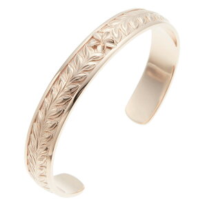 ギフト対応 ハワイアンジュエリーの伝統的モチーフ プルメリアの花と波の繊細な彫りが入った幅広バングル ブレスレット 肌にやさしいサージカルステンレス316L 商品詳細 刻印 【バングル内側刻印】1行の...