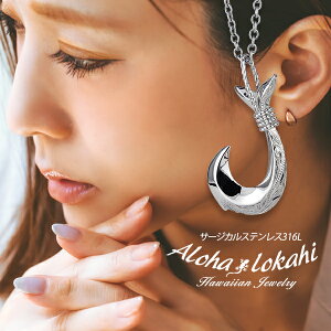 ネックレス レディース サージカルステンレス製 ハワイアンジュエリー ハワジュ フィッシュフック 釣り針 彫り 模様 お肌に優しい 金属アレルギー対応 素材<b...