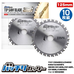 商品情報・スペック 商品金属用 チップソー125mm 10枚組 鉄・ステンレス用 消音スリット入 バッチリカッター B-TS125 適合機種 :マキタ CS540DZ LC540DZ KS521D 5205FX...